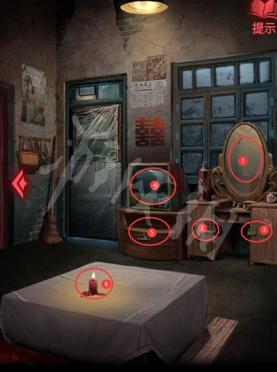 前面劇情不多說了,進入第一個場景,有6個需要用到的調查點
