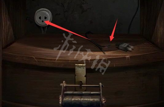 解開後取得膠帶,回到第一場景,電視機下方的1-5處,用膠帶修復插頭並插上