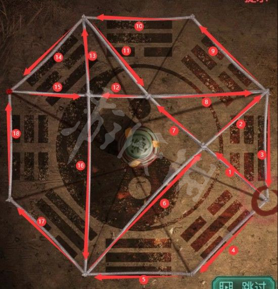 拿到口紅後,返回第四場景,可以用口紅把繩陣染紅,下圖為我個人解法