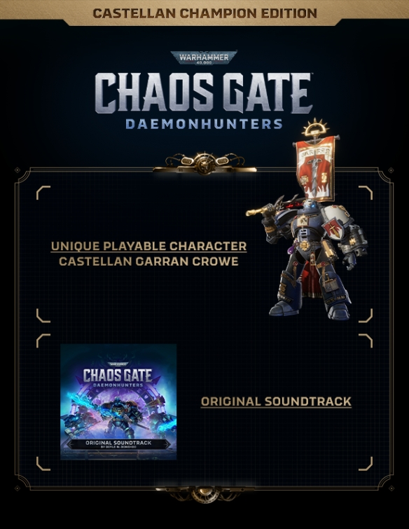 堡主勇士版內含《戰錘40k:混沌之門-惡魔獵人》遊戲本體、外加遊戲原聲帶與遊戲內的獨特可扮演人物“堡主加蘭·克羅維”。