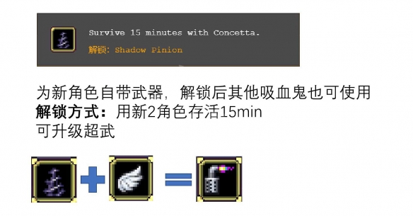 首先自帶的武器在使用新角色吉他哥存活15分鐘之後就可以解鎖了。