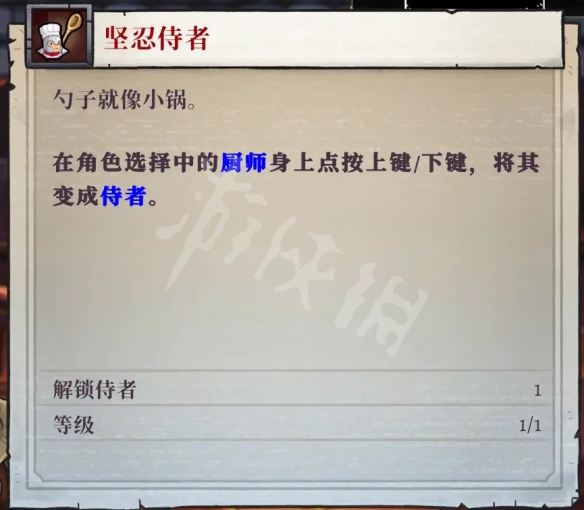 廚師的進階是堅韌侍者,武器是一袋勺子,特效是彈跳一次,彈跳後的勺子會造成暴擊並獲得智慧加成。廚師的進階武器勺子是可以瞄準發射的,無論是攻擊到牆體還是怪都會彈射,單看這個武器還是不錯的,但是對比廚師原本的平底鍋就差太多了。