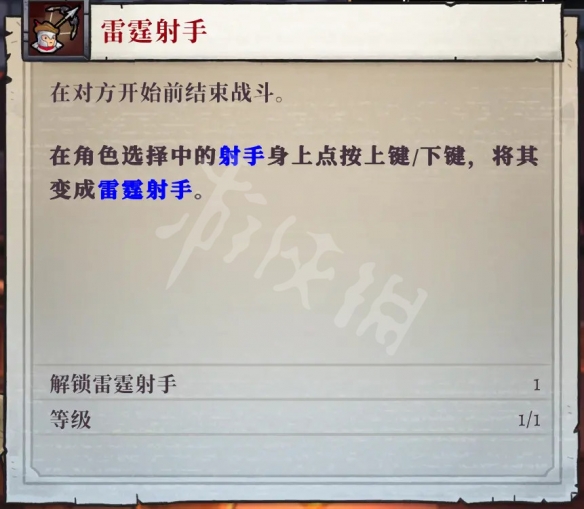 射手的進階時雷霆射手,武器時手持弩炮,效果時完美發射可以暴擊,但是只能在地面發射,並且不能取消發射。射手的進階武器就是單純的傷害及正義,但是可以說是非常的沒用。