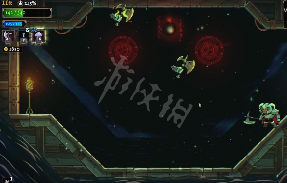 5.然後繼續過關,利用掉落的陷阱讓敵人掉到最下面。