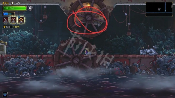 第二關boss的增傷,在boss的入口,水車輪組上面。