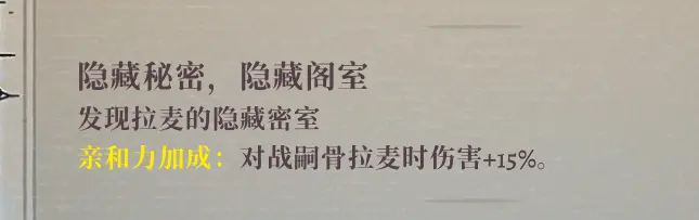 這個隱藏有一個提示,第五和第六個吊燈中間遠處的牆,用法術打開可以進去,可以得到一個永久buff,增加對第一個BOSS嗣骨拉麥的傷害+15%。
