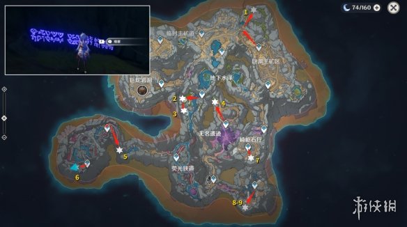 8號:在獨眼大寶後面,進去右邊的石室里,左邊是有鍾的房間。(需要先完成層岩巨淵深游記的全部6個任務,門才會開)