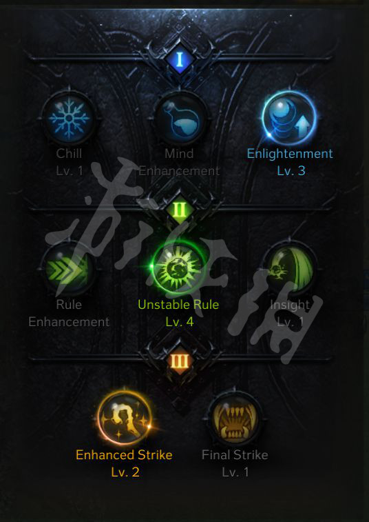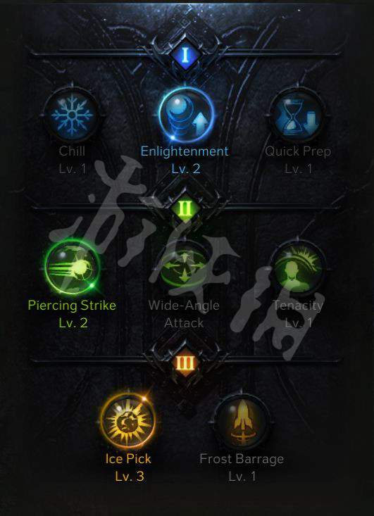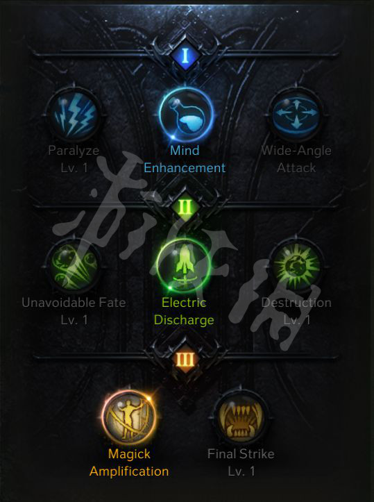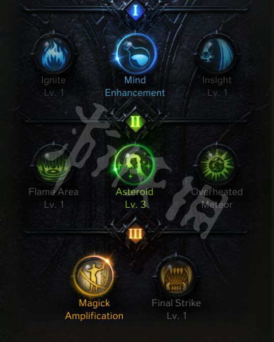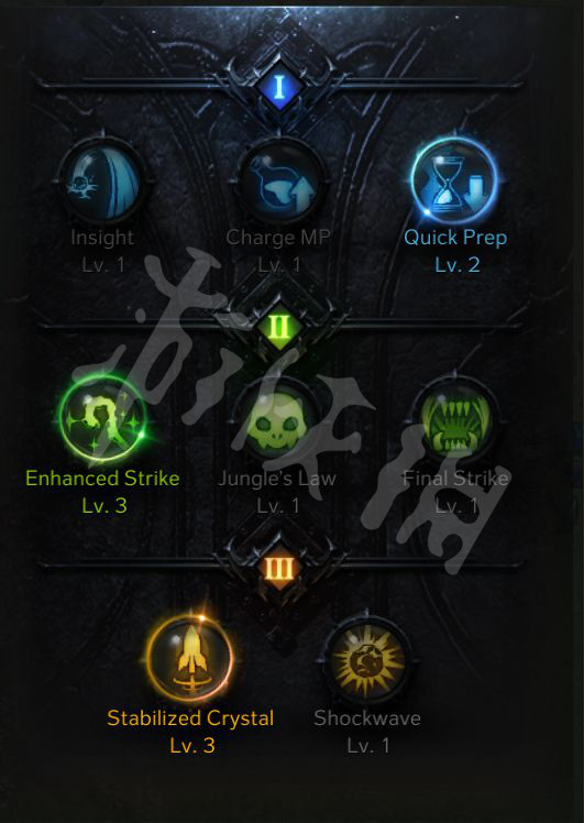其中需要說明的是,第一層 節省藍耗的技能可以任意3個技能中選擇其中2個,並非一定要按照圖中的選擇。