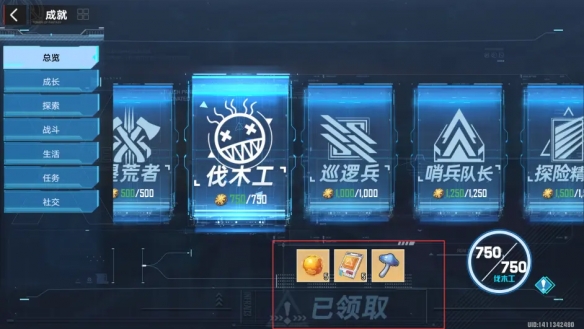 總覽裡面,達到一定的成就點數,每個階段都可以獲得5個金核和5個意志憑證: