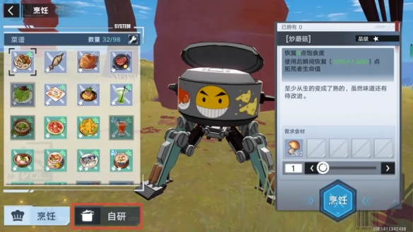 在烹飪的地方,選擇自研,可以研製出新菜譜,每個菜譜可以領取一定墨晶獎勵。(可上網查詢菜譜大全)數量還挺多的。