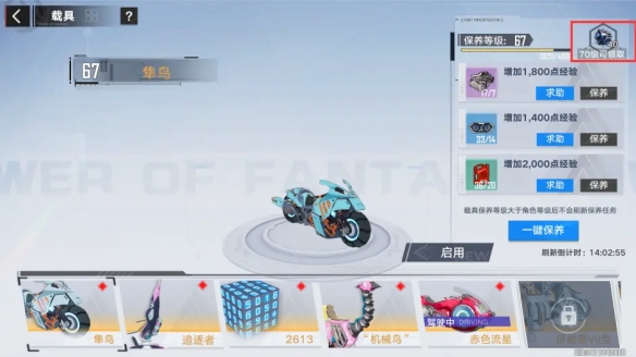 載具保養每5級可以領取一定數量墨晶,等級越高給的越多。每個載具都可以領。