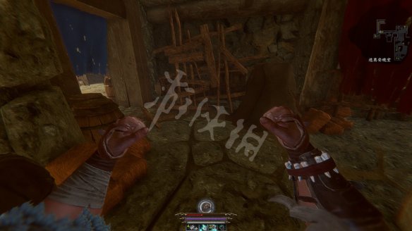走到下圖拐彎處,掛著藍色幕布的房間里有個寶箱,裡面是大量攝魂香。
