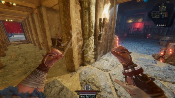 離開祭壇區域往另一邊有紅色幕布的通道走。清理掉雜兵,利用蓄力攻擊加拳入三關,一兩下就能解決敵人。