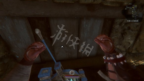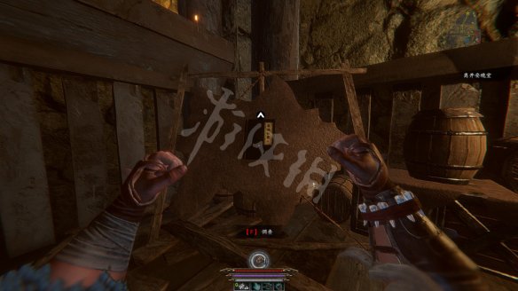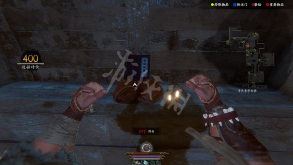 拿取秘籍解鎖技能投石問路,這個技能可以用來打掉半空中懸掛著的物品,不過需要消耗石頭。一般石頭可以在路上收集撿到。