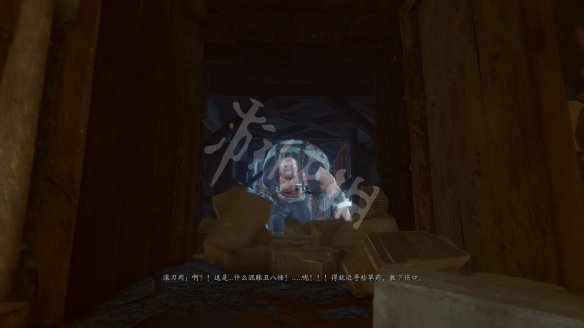 走到門邊上,後方的機關牆會啟動,掉頭按提示的鍵位進行疾跑躲過機關牆。