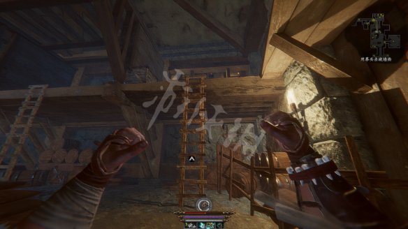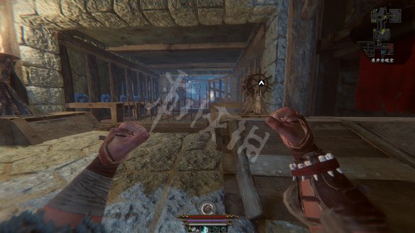返回上一個區域,那裡的梯子已經降下來了。爬上去拉動拉桿,外面左右兩側的木橋同時被放下。
