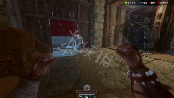 一開始先跟著指引路線走,進入區域上側的房間。在滾刀肉父親的牌位前上香。之後選擇轉動牌位,下側房間的的石門會打開。