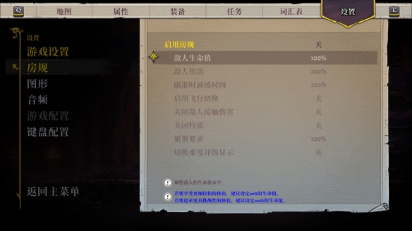 到了第二關20+的等級對30級的BOSS卻只能刮痧...好在製作組為玩家提供了可以調節房規的設定,手殘的玩家可以自行調整敵人的血量傷害以及瞄準時的減緩時間。