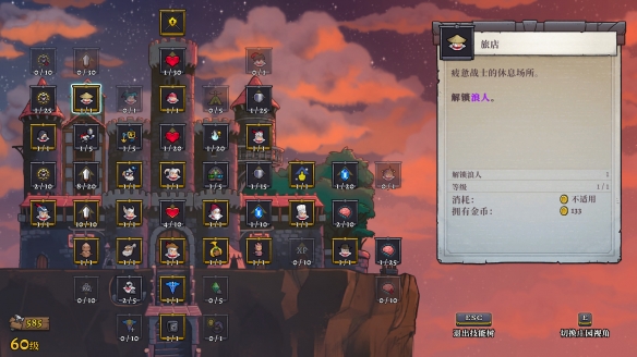 玩家可以花費金錢在技能樹中正價力量、生命值、護甲等屬性,還能解鎖鐵匠鋪、女巫住所等設施及15個不同的職業。