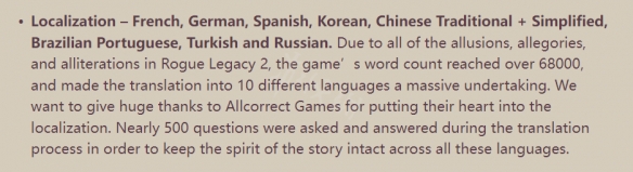 在游戲的1.0正式版更新後,盜賊遺產2游戲目前一共支持11種不同的語言,包括簡體中文以及繁體中文。