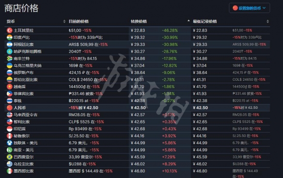 國區價格是打折42元。原價50元。最便宜的是土耳其區,大約22.8元。
