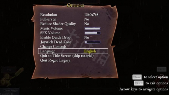 1、首先進入盜賊遺產2的游戲設置界面,找到語言設置一欄,具體位置如下圖,即language一行。
