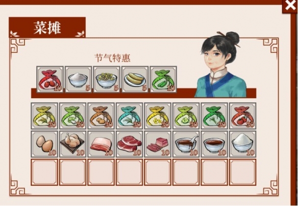其中賣菜大娘中的季節特惠是可以購買到前期任務需求物品的種子(例如黃瓜,糯米,冰翅豆等),瓊珍閣要到後面任務開啟並且需要大量材料。