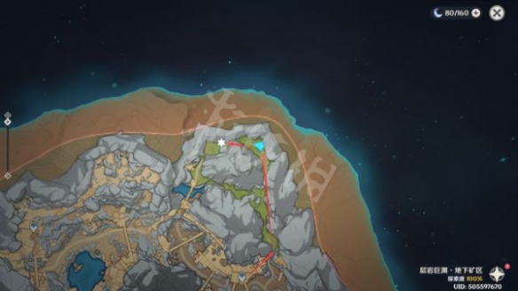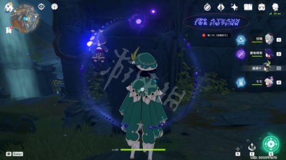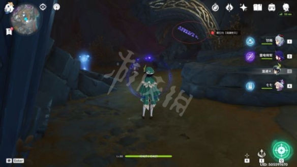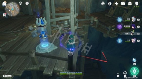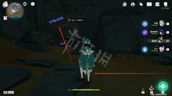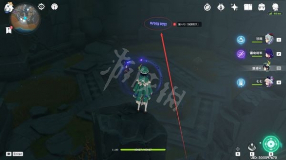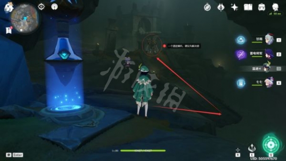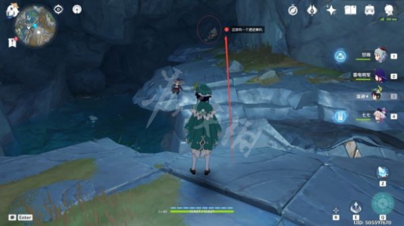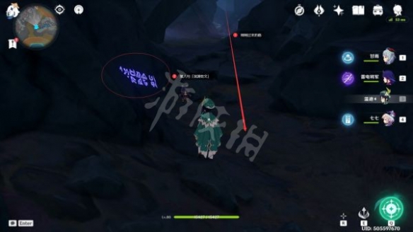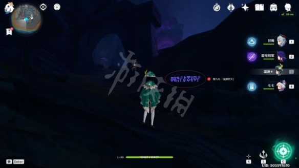 沿著路線走到這裡後,就可以看到第五句「深淵密文」了,過去觀察即可(這裡有一個丘丘人在漫步,可以無視)