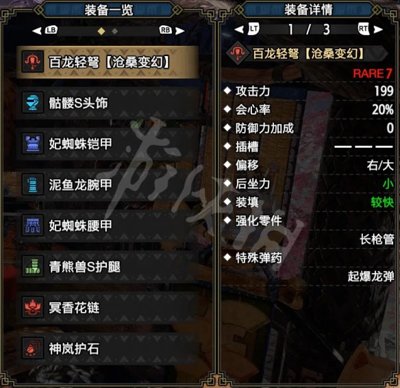 超會心1/2:有S3插槽的推薦下,優先加滿速射強化,配合多餘的超心珠位置個人推薦加達人珠提升會心率,當然也可以攻擊珠提升傷害