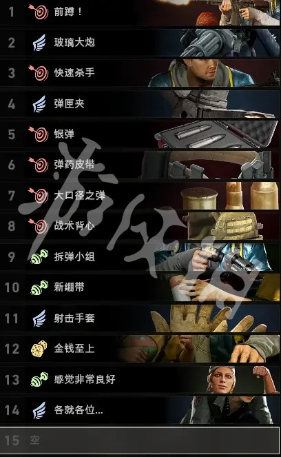 空缺的牌和禁用瞄具的牌可根據個人喜好調整。