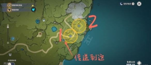 下圖是兩個物品的搜索範圍,先傳送到千風神殿下方的秘境,然後進入範圍1。