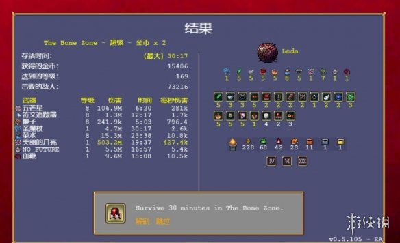 到了28分鐘後的大型骷髏會扣血,但根本死不掉,可以配吸血鞭或者其他喜歡的,比如大家愛用的短絨聖水。