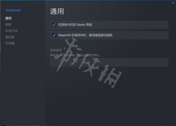 在未開始游戲時右鍵點擊,庫左側的目錄欄中的Teardown或點擊游戲主頁的右側設置。