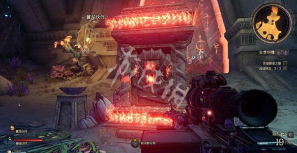 躲過獻祭神殿的伏擊,獲得寶箱中的任務物品“魔法灰燼魚”,將這只魚放入裝有木柴的火盆,射擊木柴點燃祭祀火盆。