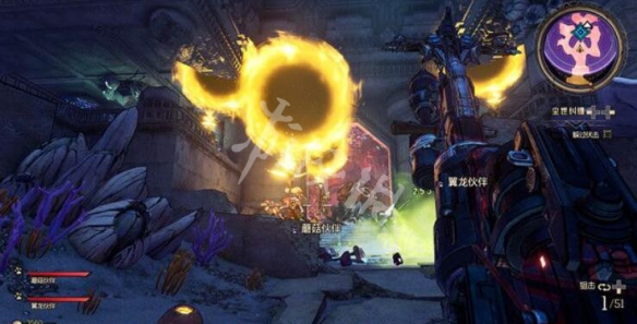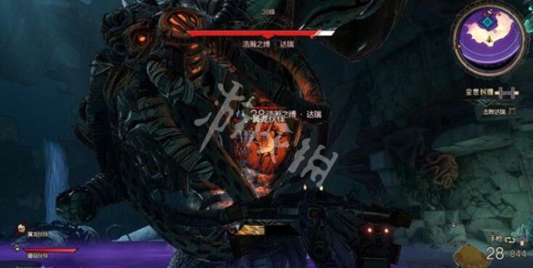 接下來你需要打敗本關的BOSS“浩瀚之縛·達瑞”,這個BOSS打法比較簡單,你可以儘可能使用破甲型武器(火箭筒,霰彈槍等)攻擊它的正面,眼睛下方的弱點(金黃色核心)部位即可。