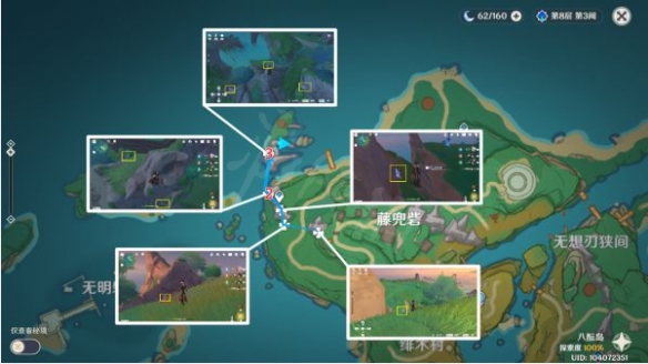 第一個位置是在上面,傳送點開始先來這個,後面就可以省的爬山上來了。