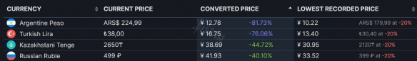 如圖所示,拆遷國區游戲售價為70元,俄區售價為499盧布(摺合41.93人民幣)阿根廷區售價為224,99比索(摺合12.78人民幣)。