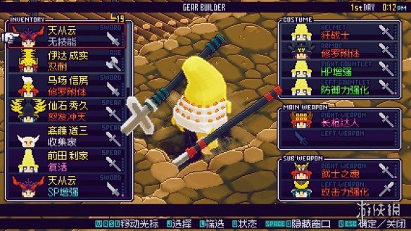 游戲的基本機制並不複雜,進藍門刷武具,進紫門打BOSS通關,白名頭目掉寶箱鑰匙(左上角能看到數量,寶箱能開武具/補給),黃名猛將直接掉武具。