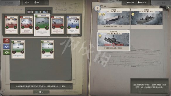 在進行[空襲]任務的部署時玩家需要進行戰術推演,玩家需要根據敵方艦隊的特點,選擇合適的攻擊卡牌進行組合得到損耗最低的最優戰術。
