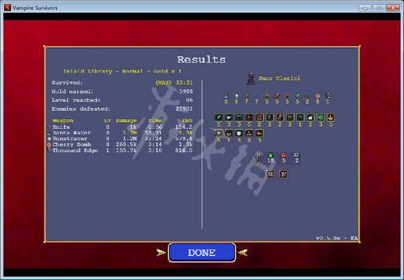 另外一個是18級骨頭哥,個人感覺容錯更大,開局除了盡量提升骨頭等級就是出時鐘柳葉刀和月桂,能出複製戒指就更好,開局選IV號3次復活的那個牌,17級的時候就去書桌那裡躲著,但是不能掛機,看到有能撿的寶箱盡量撿。