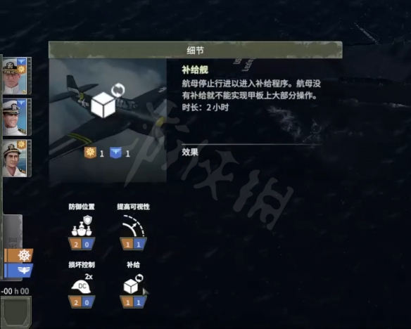 另外,如果開局時在護衛艦隊中選擇了補給船和貨船,在屏幕左上角的護衛艦技能中可以補充損失的飛行中隊。