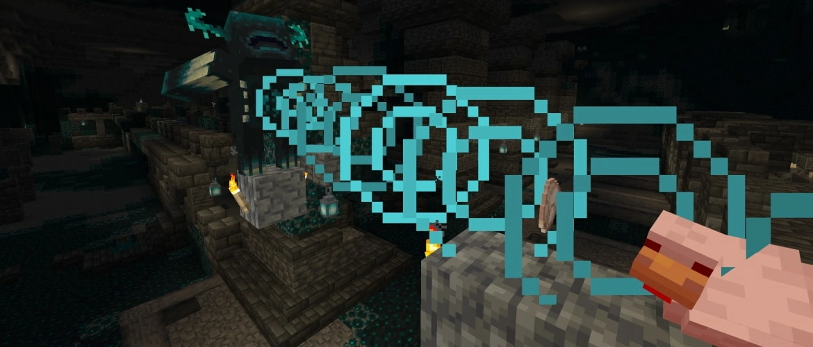 在Java版中,若監守者目標的位置在近戰範圍外或有方塊阻隔,會嘗試蓄力並發起遠程攻擊。監守者紋理中的“胸骨”將會張開,一道聲波狀的攻擊波粒子sonic_boom會自其胸前發出。