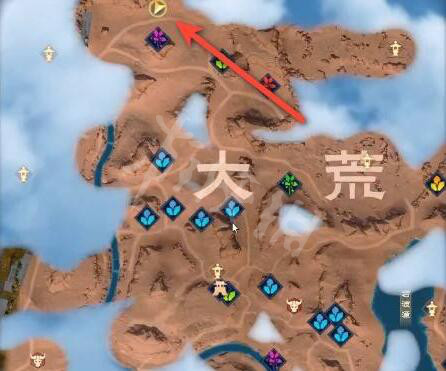 1、首先我們傳送到大荒,來到如圖所示左上角的位置。