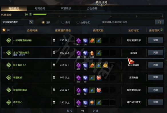 1、要獲得口哨表情,玩家首先需要完成每日委託中刷出的藍風島“土地下面的流氓”日常任務,每天完成藍風島的任務就可以獲得聲望獎勵。
