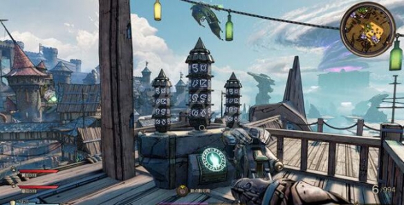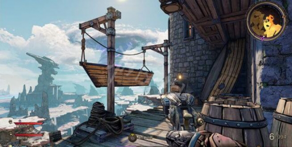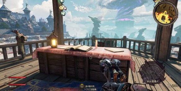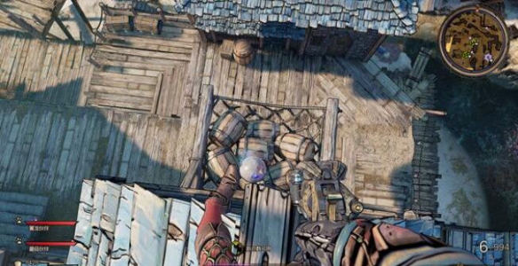 接下來到達這個位置,在這個船桿上有最後一頁詩,你可以利用附近這里被吊起的木船到達房頂,最後到達那裡獲得收集。