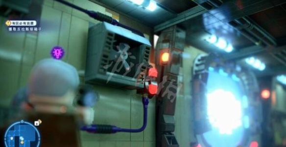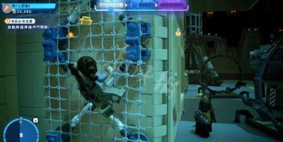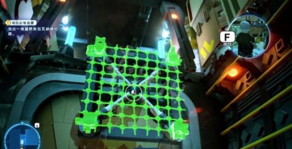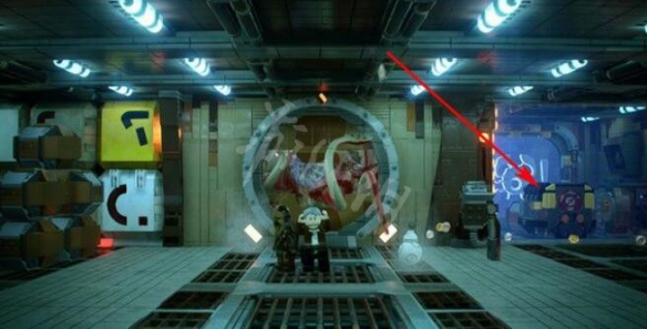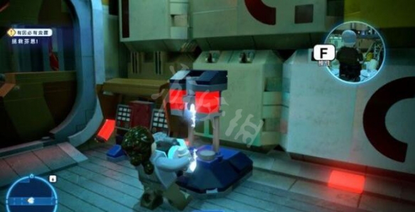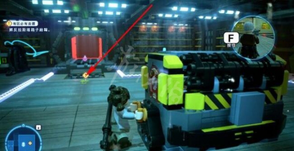 然後切換到索羅,瞄準紫色圖標,射爆牆壁上的物件,利用掉落的零件修復好控制台。