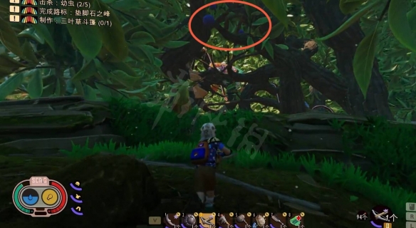 2、到達漿果叢後,可以看到一些樹上長有藍色漿果的植物,就是漿果果樹;