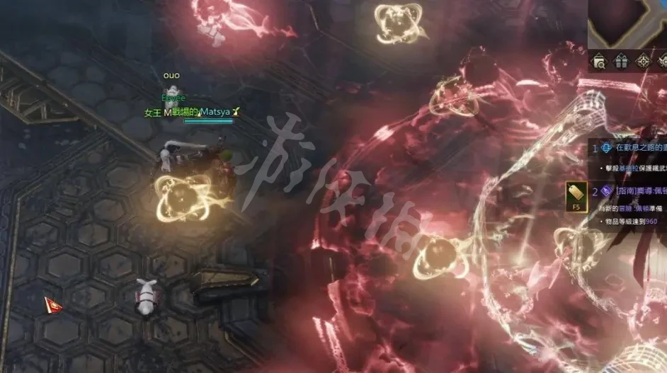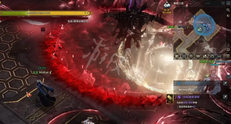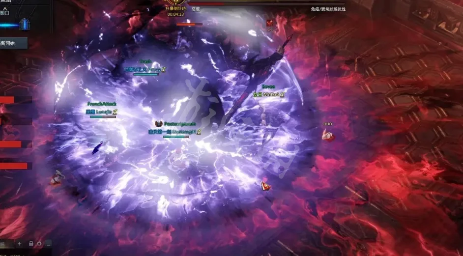 10、第二種是王突然向上飛消失再隨機跳到其中一個人身上,如果沒有躲開這招王會捉住跳中的人把他吸干吸的時候所有攻擊都無法傷到王,王吸收完她腳下會出小紅圈近攻不要接近等紅圈消失遠攻繼續輸出,應對的方法是當你留意到王突然向上飛消失不要站在原地發呆保持走來走去就可以。