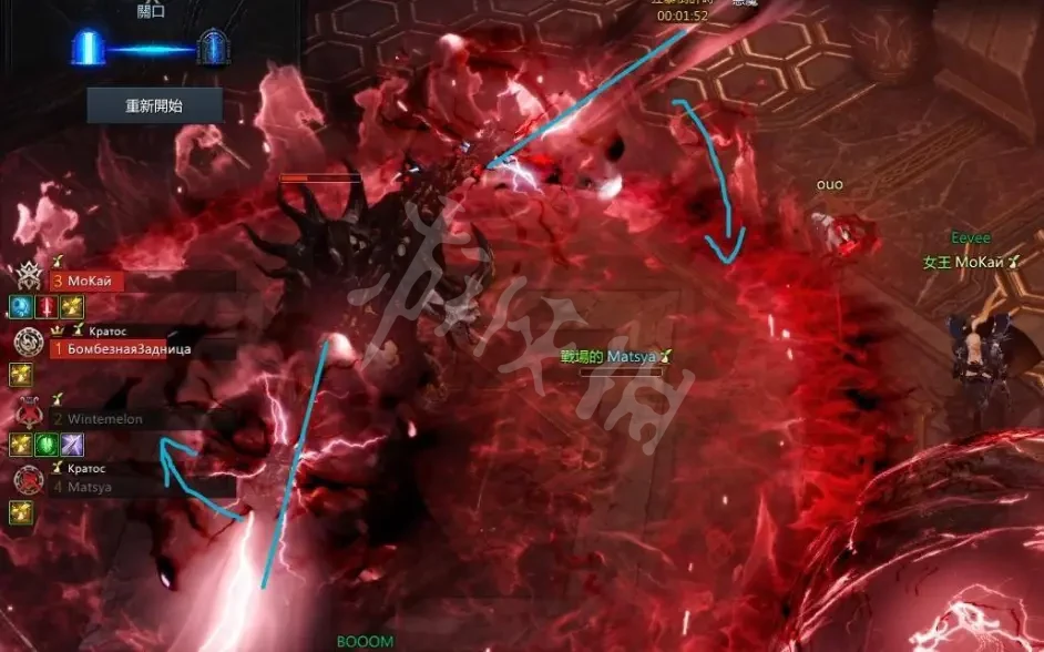 5、紅色區域不要碰到裝備剛剛好的話碰一下半條血就沒有了,紅色區域出現後每個人所在的位置,會落下一道閃電這些閃電小紅圈同樣不能碰到,第二次機制時碰到會被暈隊友死掉的話,剩下的閃電會在另外一個活人身上再放一次。