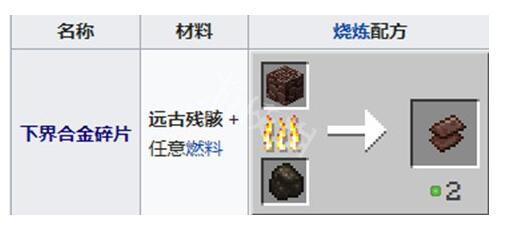 我的世界下界合金是通過下界合金碎片加金錠合成獲得,下界合金碎片通過燒煉遠古殘骸獲得。